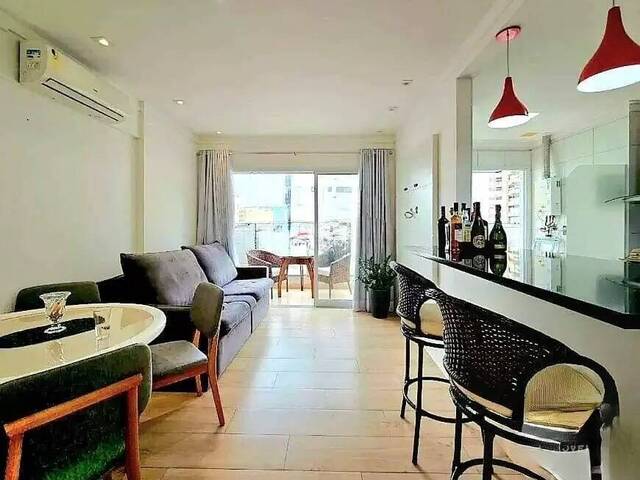 Experimente o máximo de conforto e sofisticação com este elegante apartamento de 65m², localizado no renomado Residencial Latitude 46, em Santos. Com uma planta bem planejada e distribuída, esta unidade é ideal para quem busca qualidade de vida e uma localização privilegiada na Ponta da Praia Descrição do Imóvel: Dormitório: 1 (com sacada e vista para o mar) Banheiros: 1 (equipado com hidromassagem) Área Total: 65 m² Sala: Ampla para dois ambientes, integrada à varanda espaçosa Cozinha: Americana com armários planejados Área de Serviço: Integrada à cozinha. Ficam os planejados, cozinha completa, poltronas e banquetes na sala. Vaga de Garagem: 1 demarcada Infraestrutura do Condomínio: Lazer Completo: Piscina, salão de festas com churrasqueira, salão de jogos e academia Localização: Situado na Ponta da Praia, este apartamento está em uma localização privilegiada, oferecendo uma vista encantadora para o mar e fácil acesso a todas as comodidades que a região oferece. Aproveite esta oportunidade única de viver em um ambiente que combina beleza, conforto e qualidade de vida. Agende sua visita e encante-se com cada detalhe deste incrível apartamento.