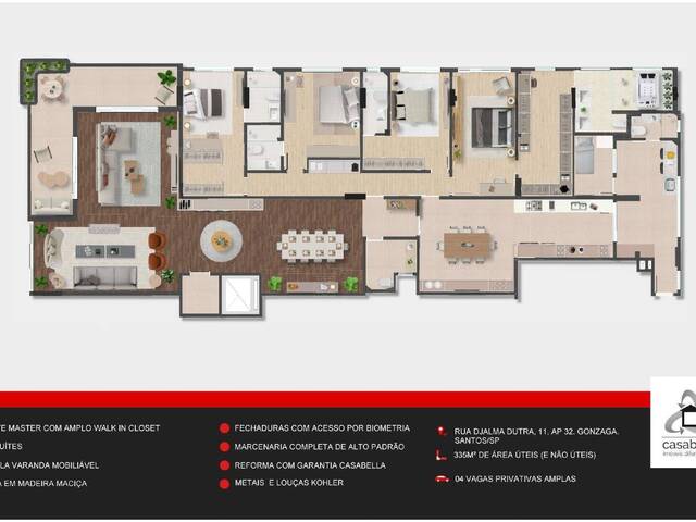 Apartamento amplo e sofisticado, contando com: - 4 quartos sendo 4 suítes - Closet Walk-In - Sala para 3 ambientes - Varanda - 6 banheiros - Cozinha ampla - Área de serviço - Dependência completa de empregada O prédio oferece: - Portão eletrônico - Elevador - 4 vagas de garagem privativas Localizado no Gonzaga, oferece uma infraestrutura completa com proximidade a comércios locais, shoppings, escolas, restaurantes, bares, academias e muito mais! Agende uma visita com um de nossos corretores através do telefone e Whatsapp (13) 99736-2877 Ou venha nos visitar! Estamos na Rua Bahia, 131 - Gonzaga- Santos/SP (Estacionamento no local) (Os imóveis publicados neste site, prescindem de verificação junto ao proprietário quanto à disponibilidade e aos valores. AS VAGAS DE GARAGEM: Sujeito a confirmação e verificação no local, devendo sempre respeitar as normas, regimento interno e convenção condominial registrado em atas.)