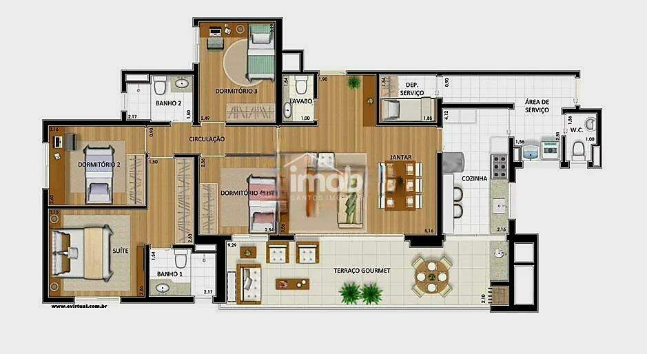 - 4 dormitórios com armários e closet, sendo 1 suíte